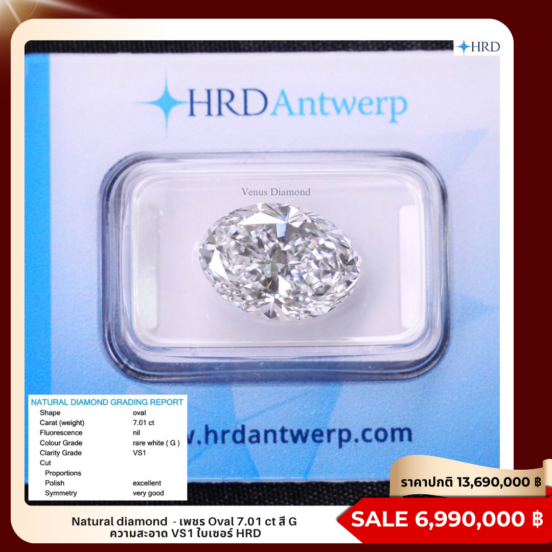 Oval 7.01 ct สี G ความสะอาด VS1 1X1VG N HRD 250000196258
