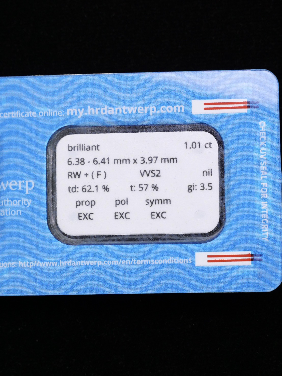 - Round 1.01 ct สี F ความสะอาด VVS2 3X N HRD 250000139373