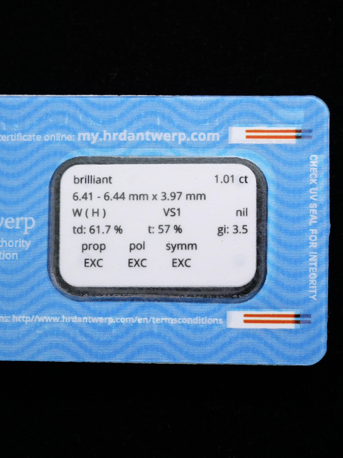 Round 1.01 ct สี H ความสะอาด VS1 3X N HRD 250000199670