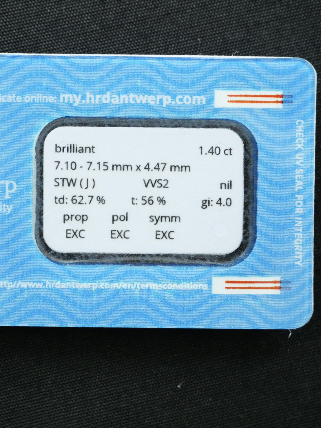 Round สี 1.40 ct สี J ความสะอาด VVS2 3X N HRD 250000299553