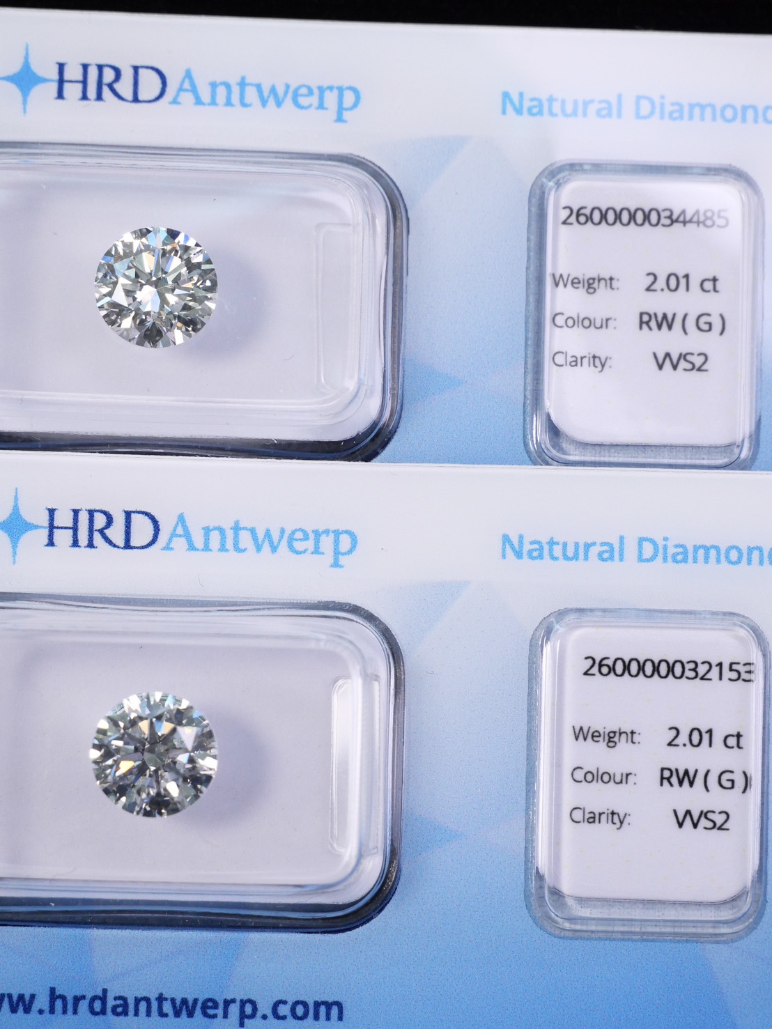 Round 2.01 ct G VVS2 3X N HRD 260000032153 Round 2.01 ct G VVS2 3X N HRD 260000034485