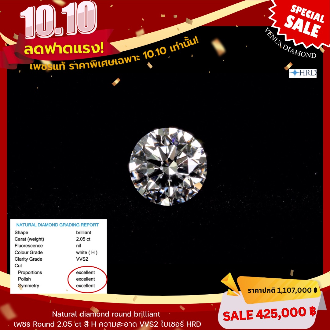 เพชรกลม Round น้ำหนักเพชร 2.05 กะรัต