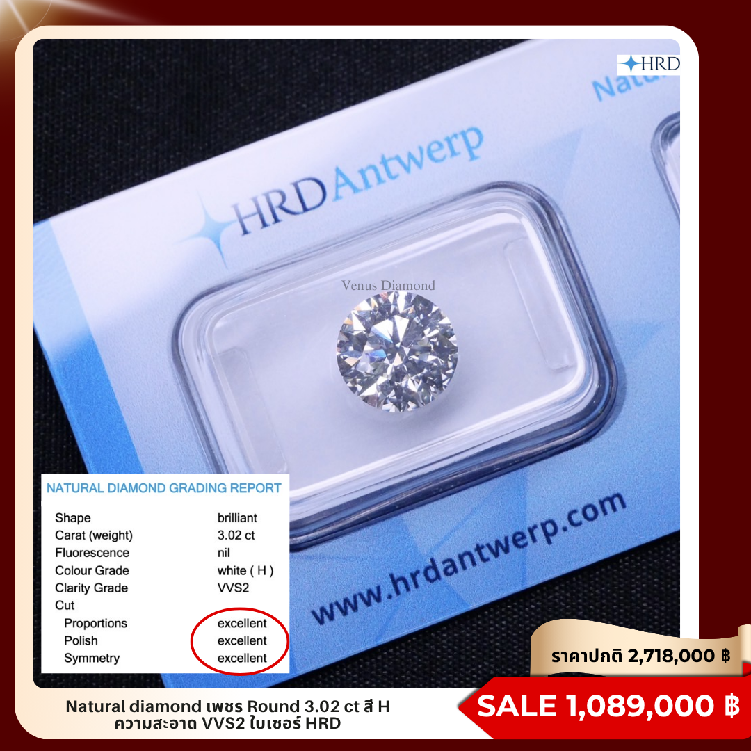 Round 3.02 ct สี H VVS2 3X N HRD 250000093198