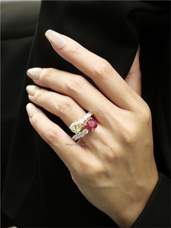 แหวนเพชร Ruby 3.19 ct vivid red Myanmar + Diamond 3.76 ct