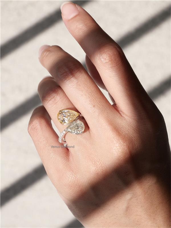 แหวนเพชร Pear 2.10 ct Fancy Yellow ความสะอาด VVS1 GIL + Pear 2.54 ct K VS1 GIL