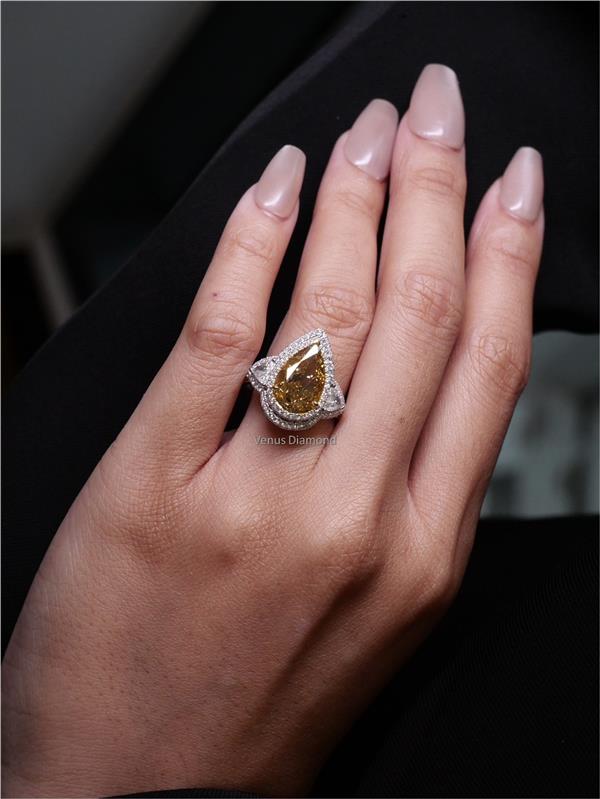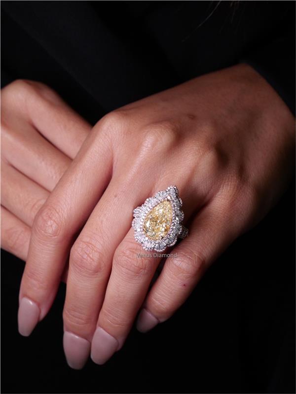 แหวนเพชร Pear 3.45 ct สี Fancy Yellow ความสะอาด VVS1 GIL
