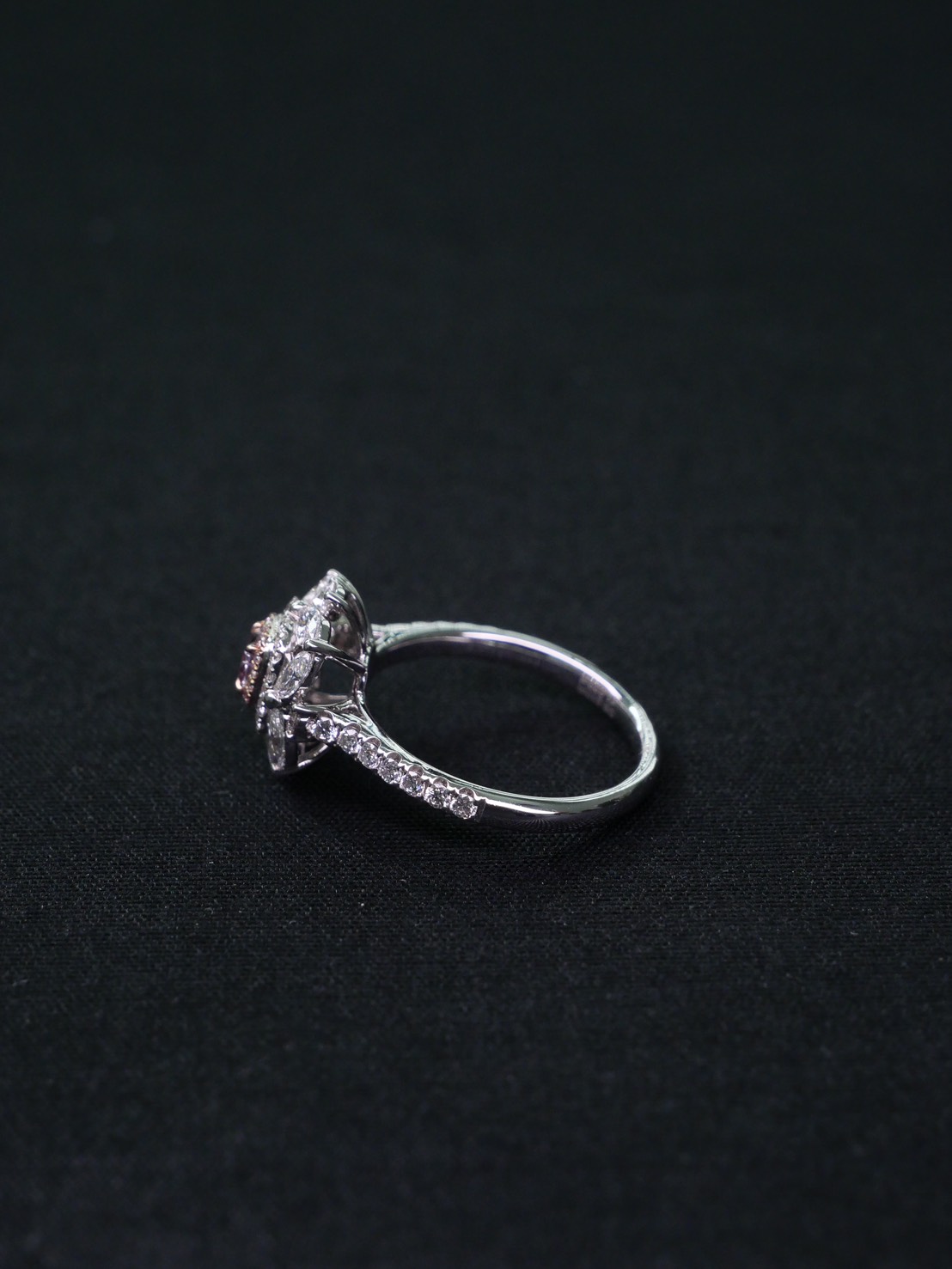 แหวนเพชร Cushion 0.21 ct Fancy Pink-Purple I2 1VG1G N GIA 6183861816 Round 1.02 ct white gold 18k. 4.02 g.