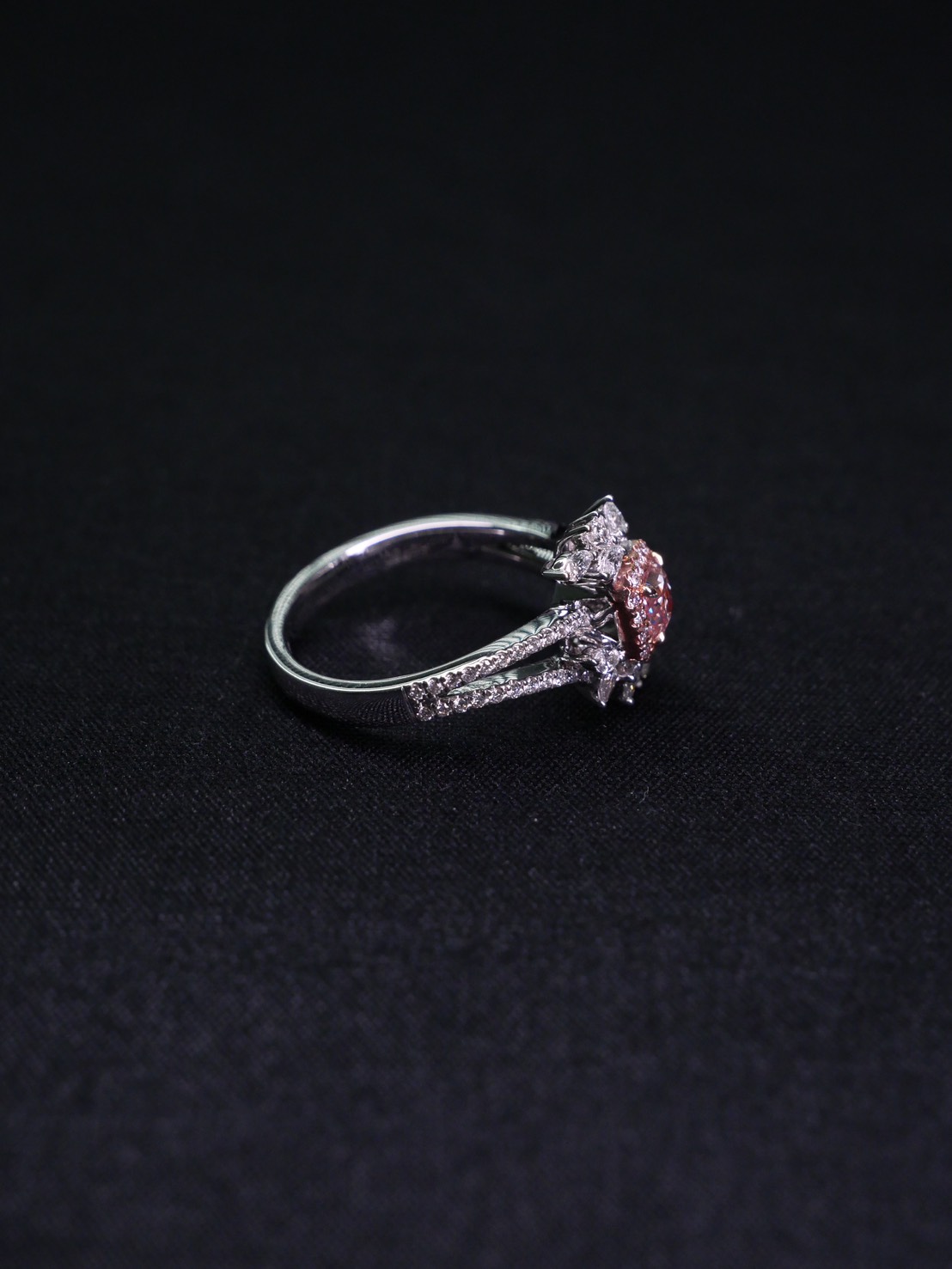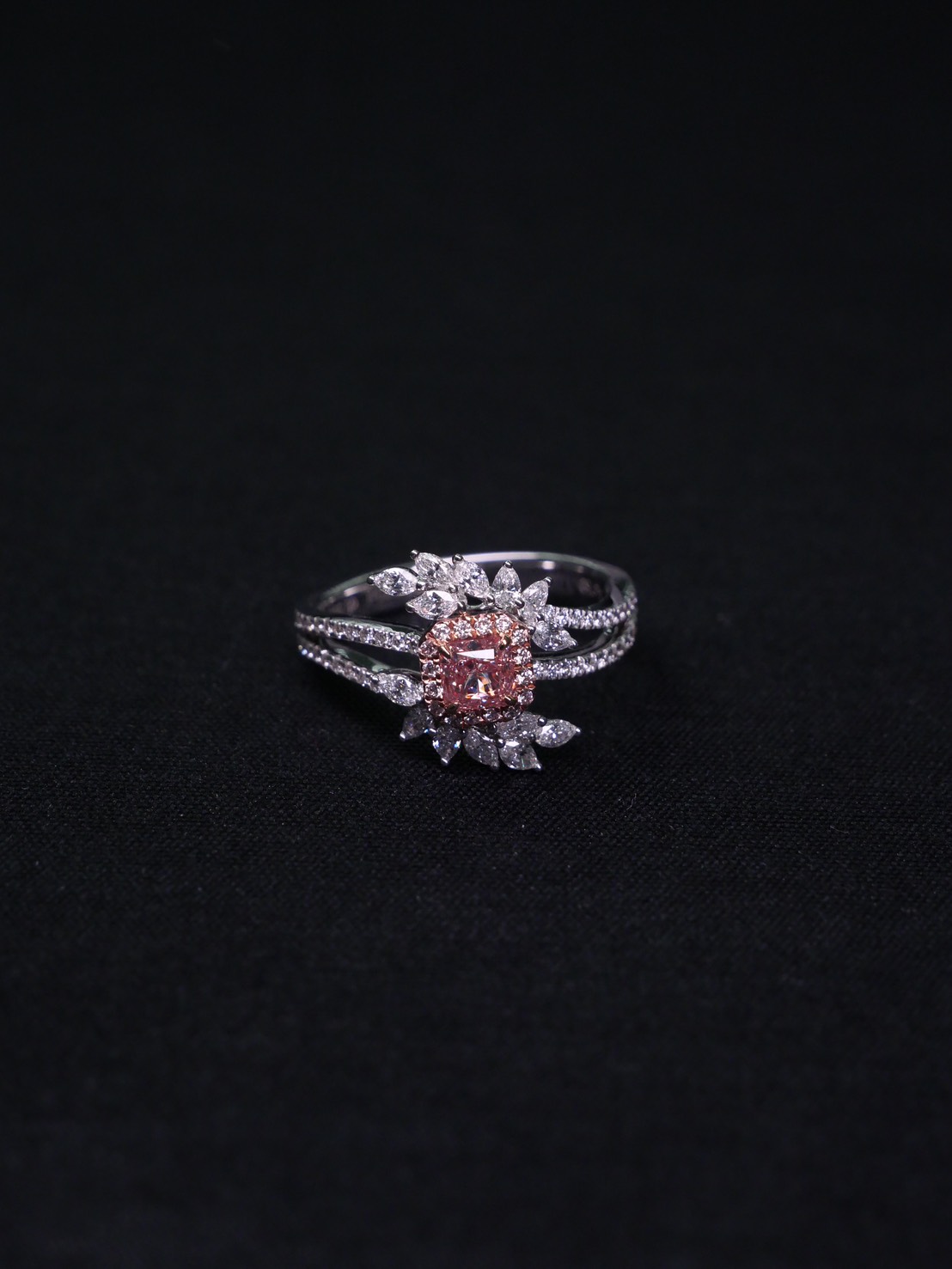 แหวนเพชร Cushion 0.37 ct Light Pink ความสะอาด VS2 1X1VG N GIA 1172028469 Round 0.57 ct white gold 18 k.4.29 g.