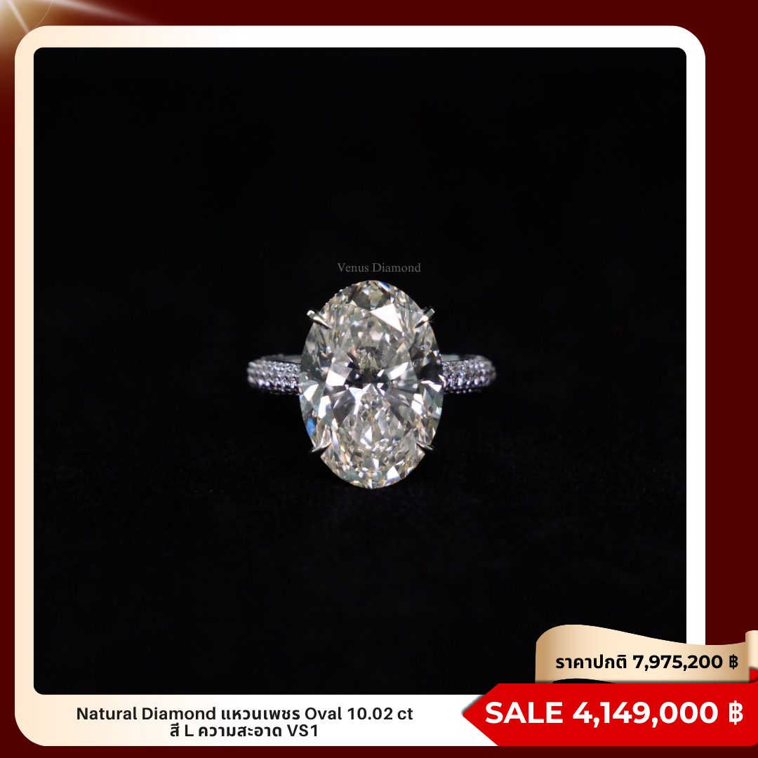 แหวนเพชร Oval 10.02 กะรัต เพชรขาวน้ำ 92 สี L color เพชรสะอาดมาก VS1