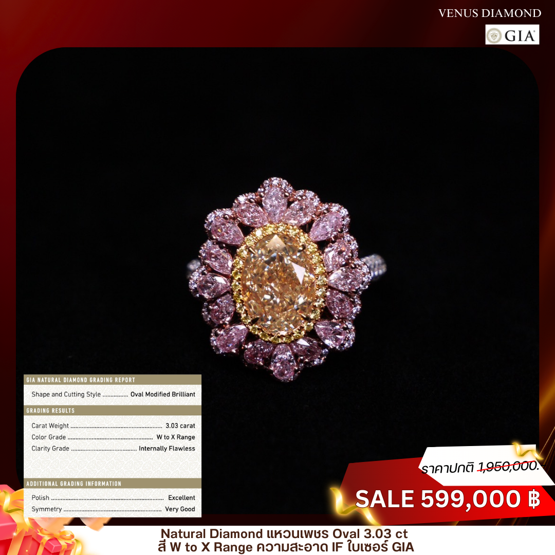 แหวนเพชร Oval 3.03 ct สี W X ความสะอาด IF 1X1VG STB ใบเซอร์ GIA 6522088018 Diamond 9.72 ct Gold 2.27 g.
