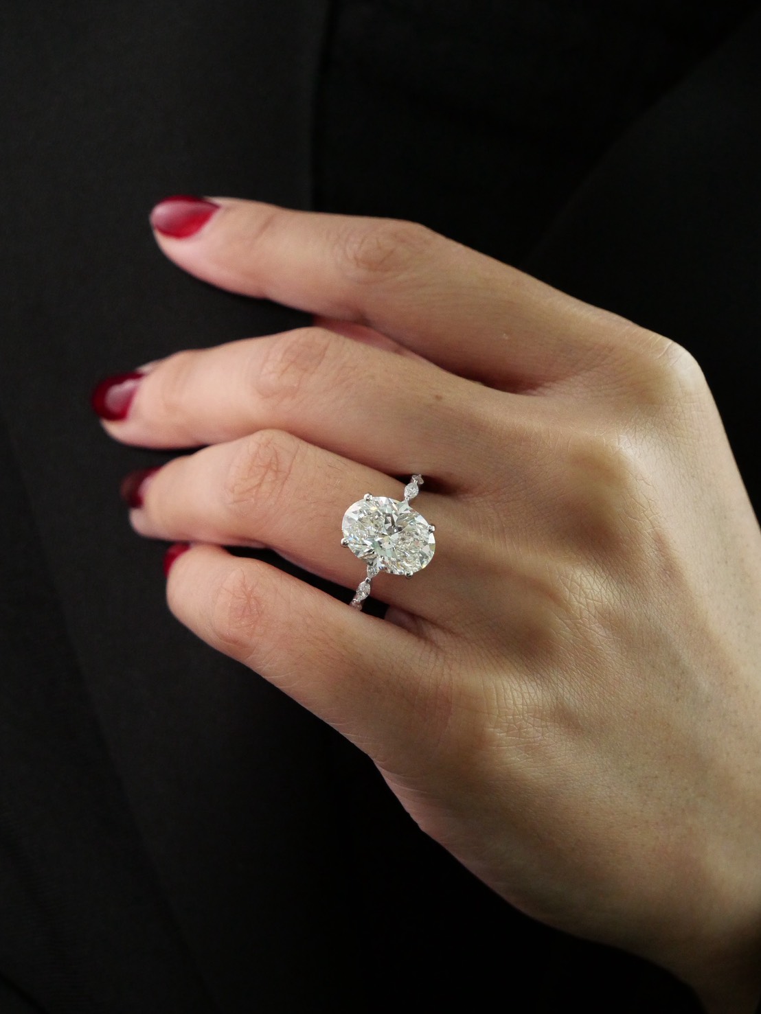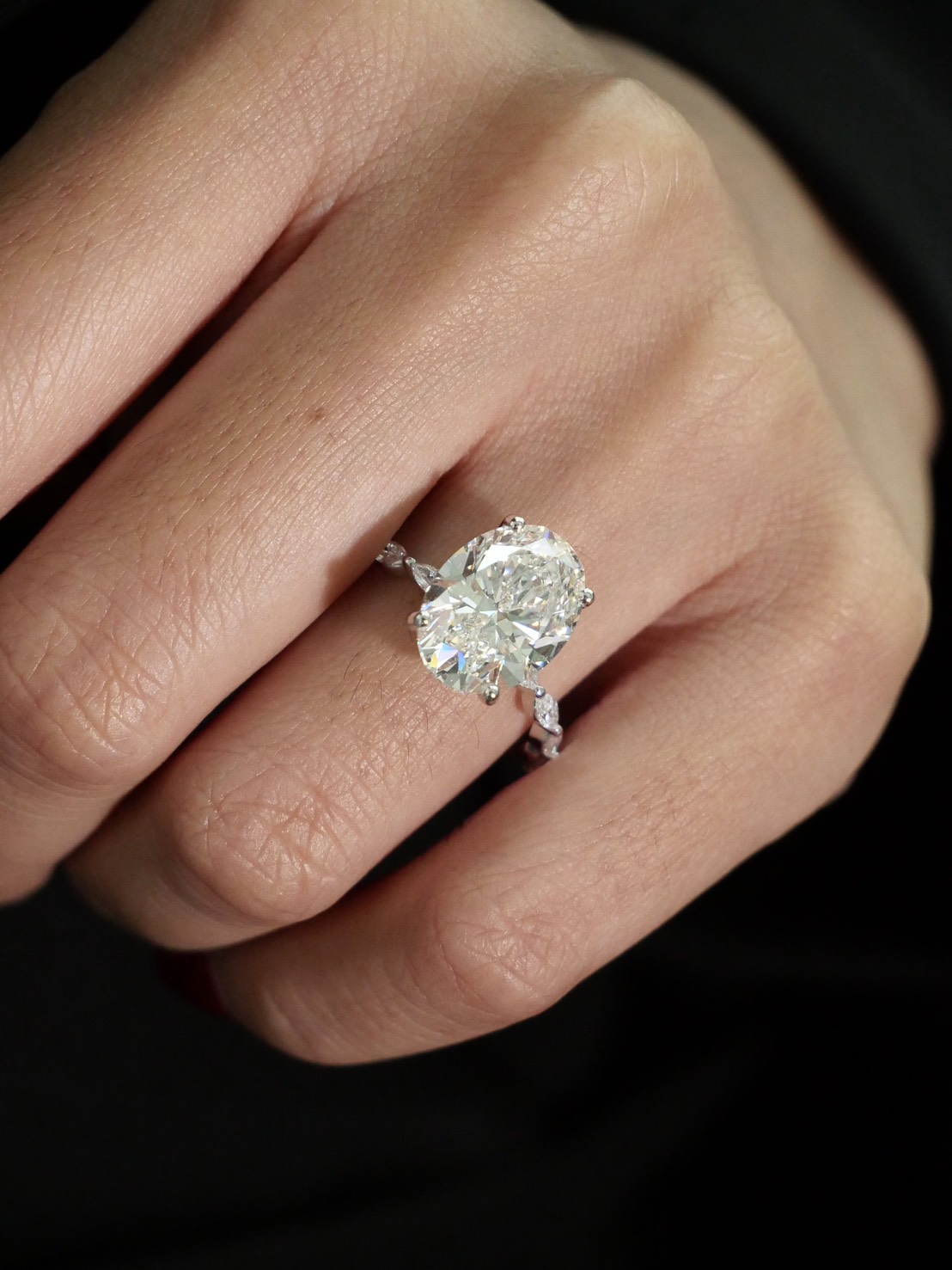 แหวนเพชร Oval 5.01 กะรัต เพชรขาวน้ำ 96 สี H เพชรสะอาดมาก VS1