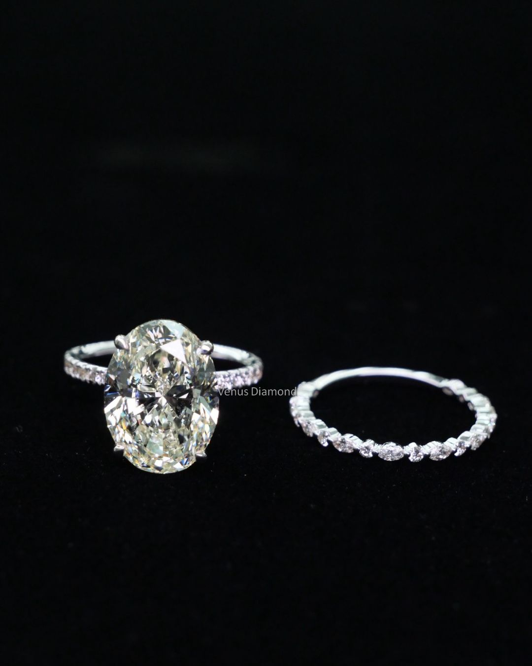 แหวนเพชร Oval 8.01 ct สี H I ความสะอาด VVS VS GIL Diamond 18 pcs 0.25 ct white gold 18K 3.20 g.