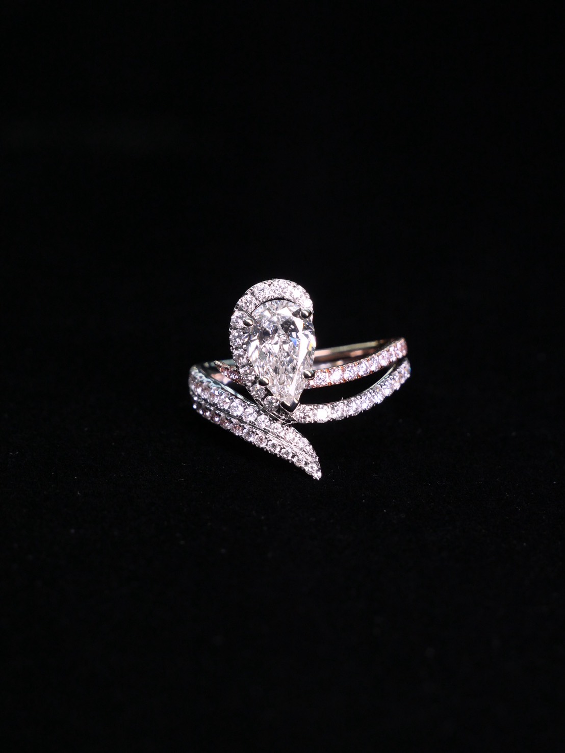 แหวนเพชร Pear 1.06 ct สี H ความสะอาด VVS2 ความสะอาด HRD