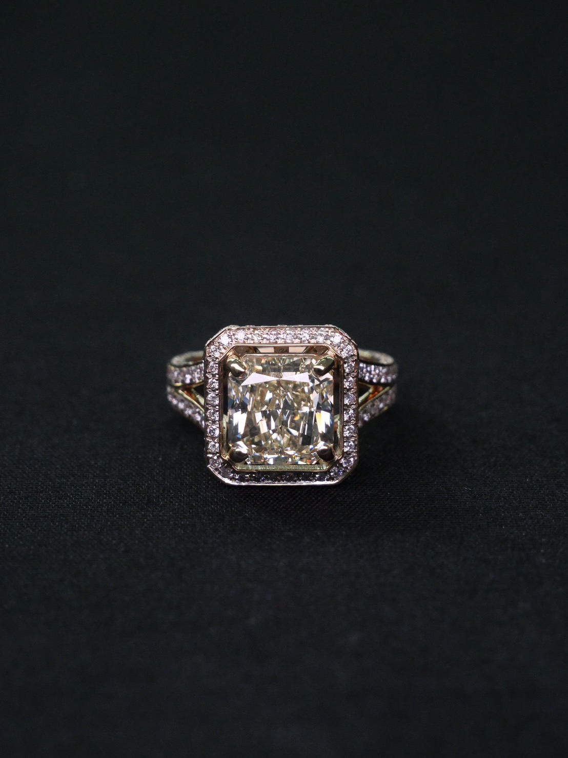 แหวนเพชร Radiant 4.59 ct Fancy Light Yellow VVS VS GIL