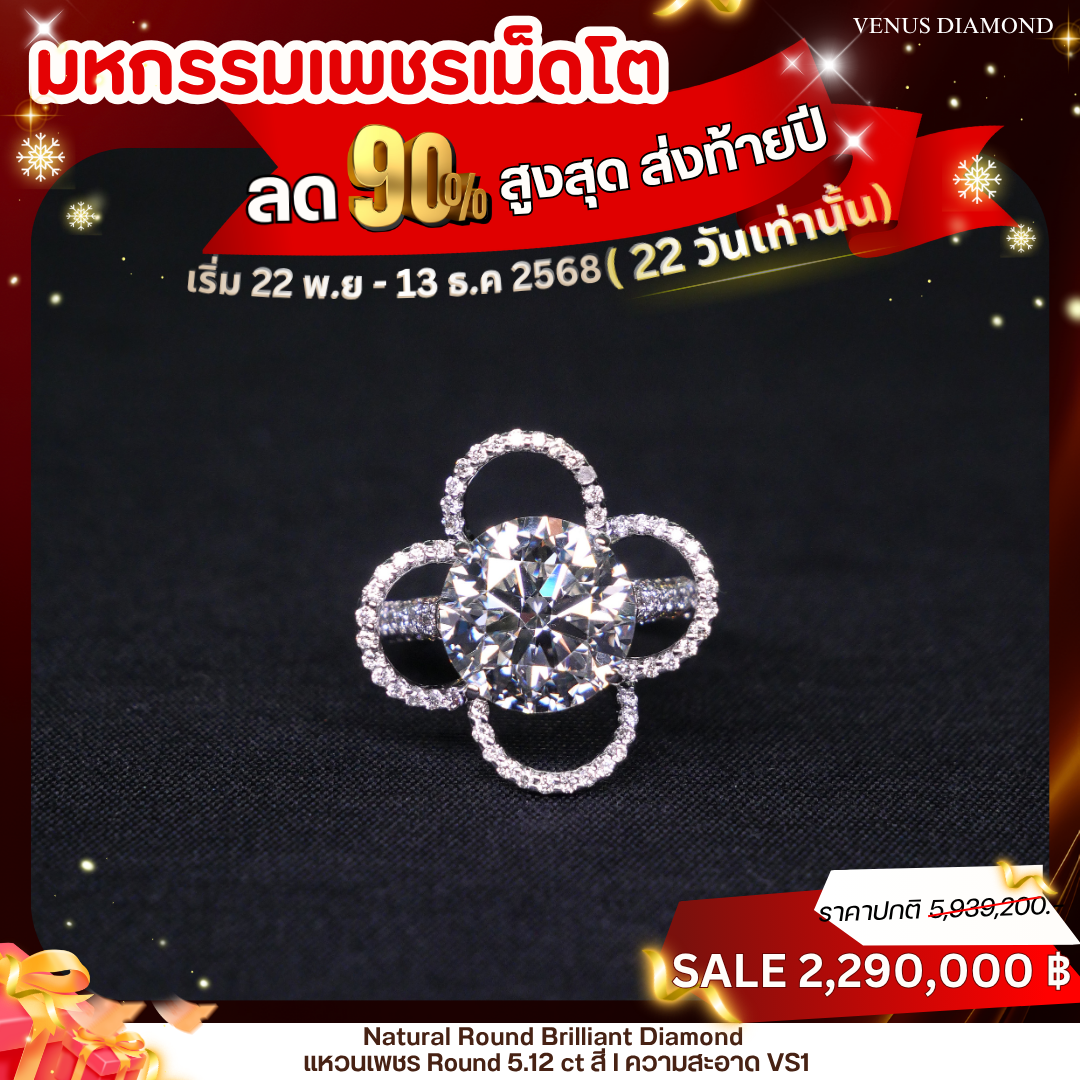 เพชร Round น้ำหนักเพชร 5.12 กะรัต