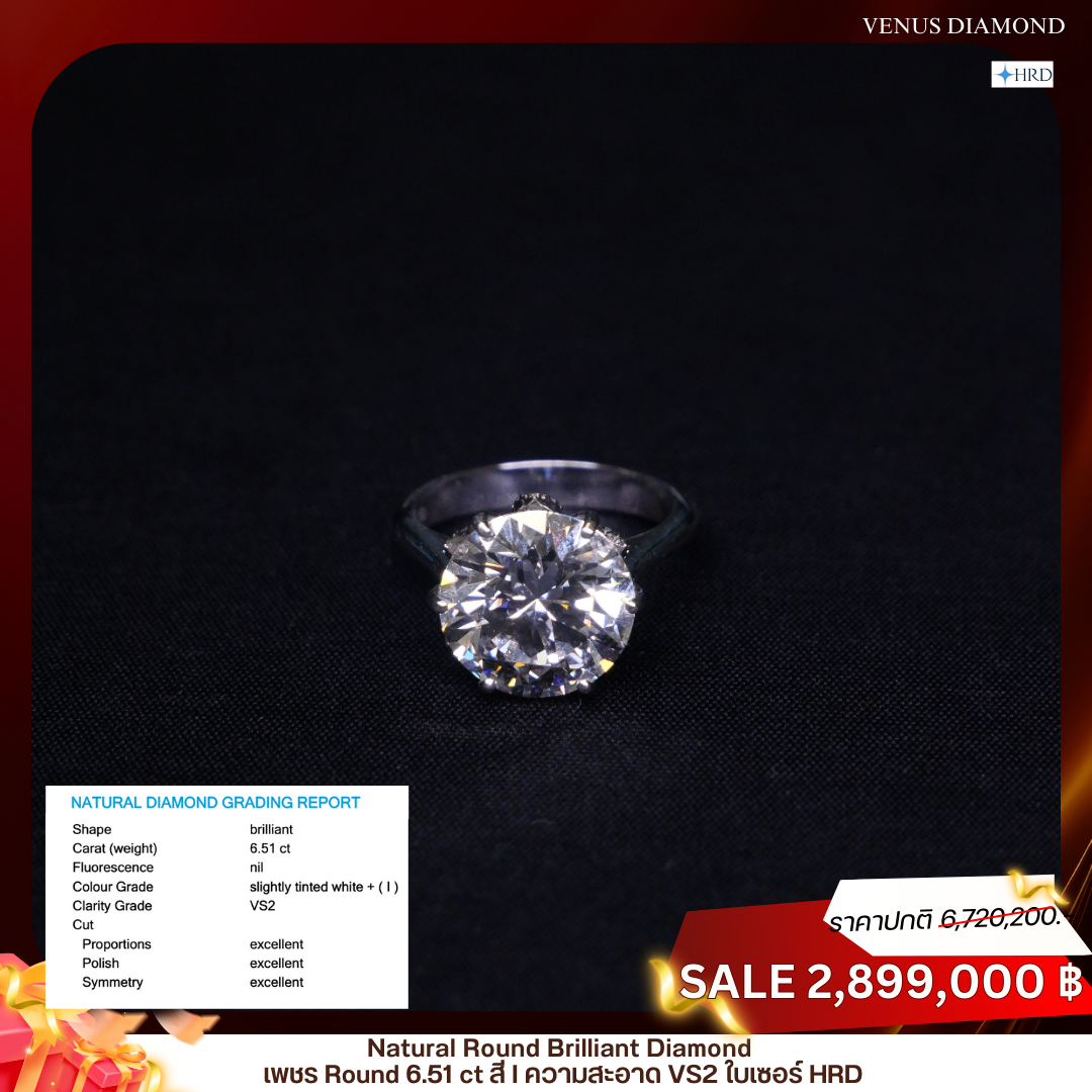 รายละเอียด : แหวนเพชร Round 6.51 ct สี I ความสะอาด VS2 3X N HRD 250000223395