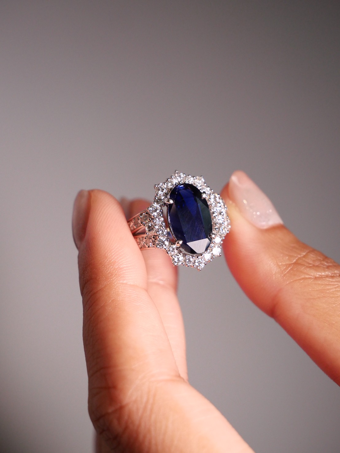 แหวน Natural Sapphire 2.57 ct Burma( Myanmar) ON Indication of heat ใบเซอร์ GIA G.7.10 g Diamond 1.32-0.33 ct