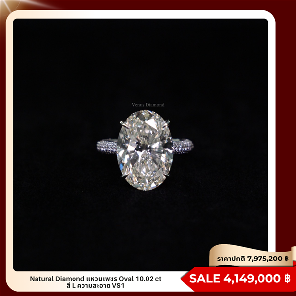 แหวนเพชร Oval 10.02 ct สี L ความสะอาด VS1 ใบเซอร์ IGI