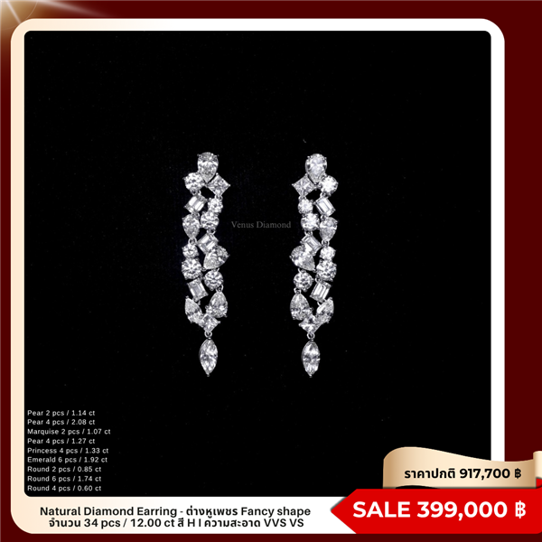ต่างหูเพชร Fancy 34 pcs 12.00 ct สี H I ความสะอาด VVS VS