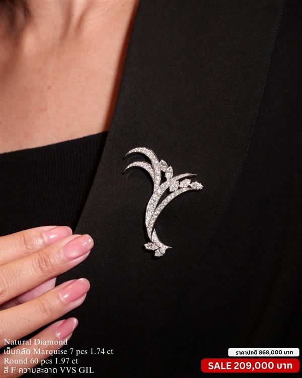 เข็มกลัด Marquise 7 pcs 1.74 ct Round 60 pcs 1.97 ct สี F ความสะอาด VVS GIL