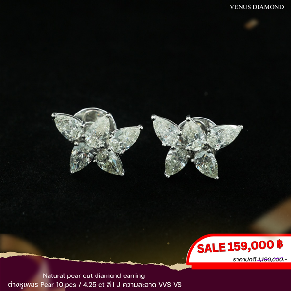 ต่างหูเพชร Pear 10 pcs 4.25 ct สี I J ความสะอาด VVS VS