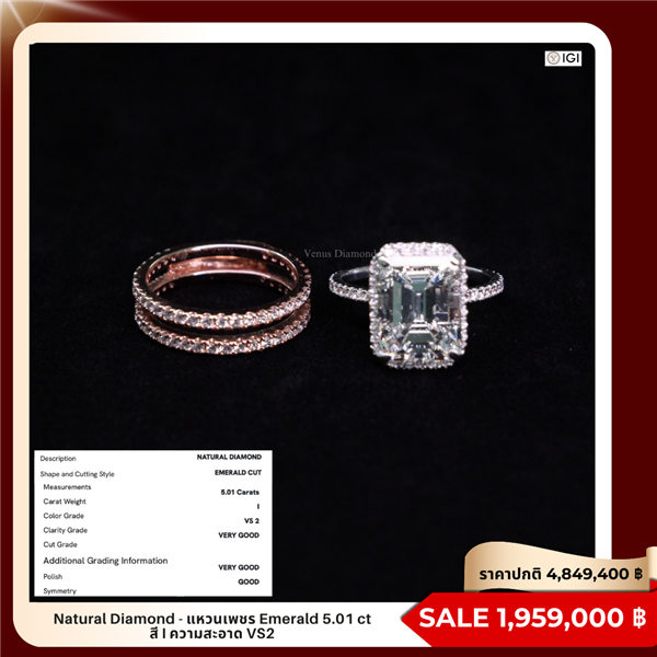แหวนเพชร Emerald 5.01 ct สี I ความสะอาด VS2 ใบเซอร์ IGI