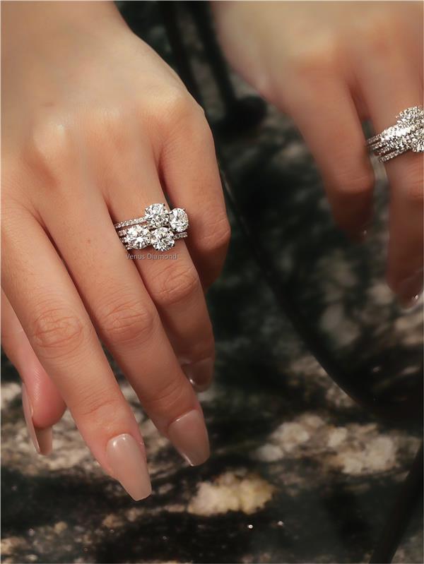 แหวนเพชร Round 1.00 ct+1.00 ct+1.00 ct+1.00 ct สี H ความสะอาด VVS1-VVS2 ใบเซอร์ HRD