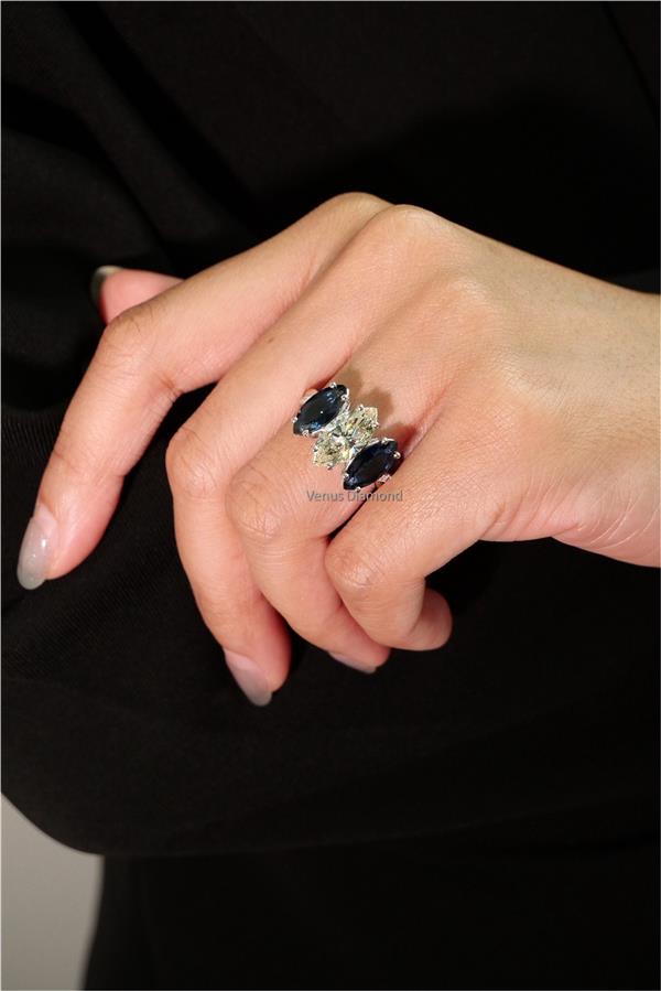 แหวนเพชร Marquise 2.02 ct สี M ความสะอาด VS1 ใบเซอร์ GIA + blue Sapphire 2 pcs 2.85 ct