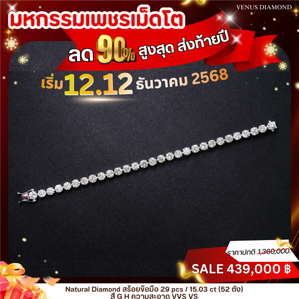 สร้อยข้อมือเพชร Diamond 29 pcs 15.03 ct สี G-H ความสะอาด VVS VS GIL