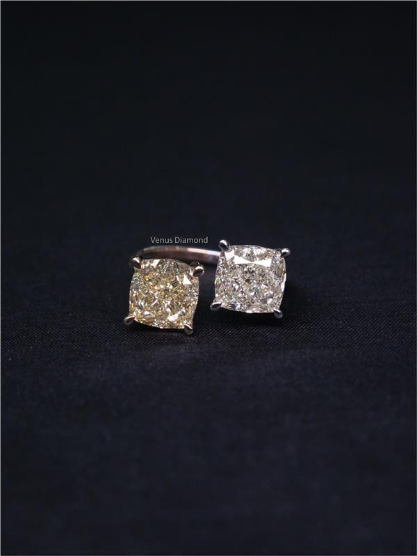 แหวนเพชร Cushion 4.04 ct Fancy Yellow Cushion 4.02 ct สี I J ความสะอาด VVS1