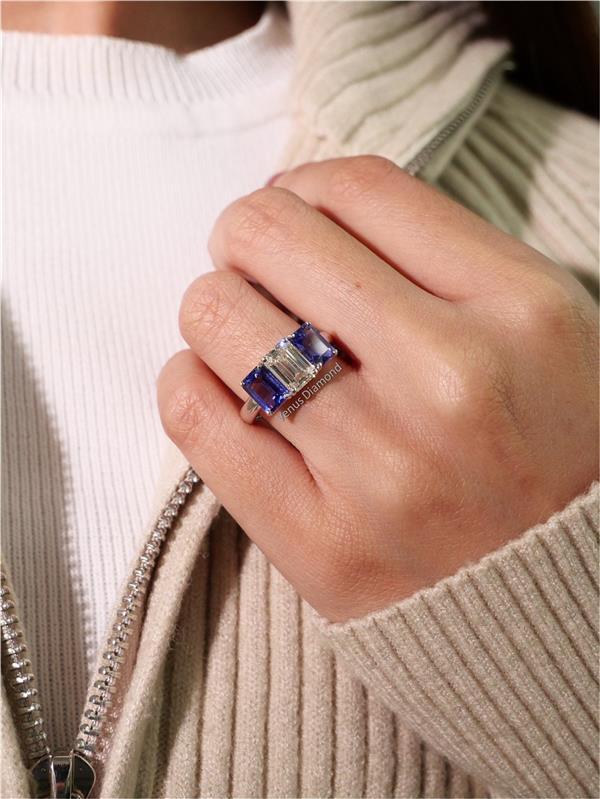 แหวนเพชร Emerald 2.02 ct +0.51 ct+0.52 ct สี H-G ความสะอาด VVS1-VS2 ใบเซอร์ HRD-GIA