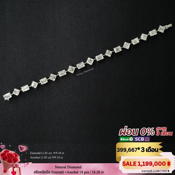 สร้อยข้อมือเพชร Emerald 9 pcs 9.10 ct + Asscher 9 pcs 9.18 ct สี I-J น้ำ 95-94
