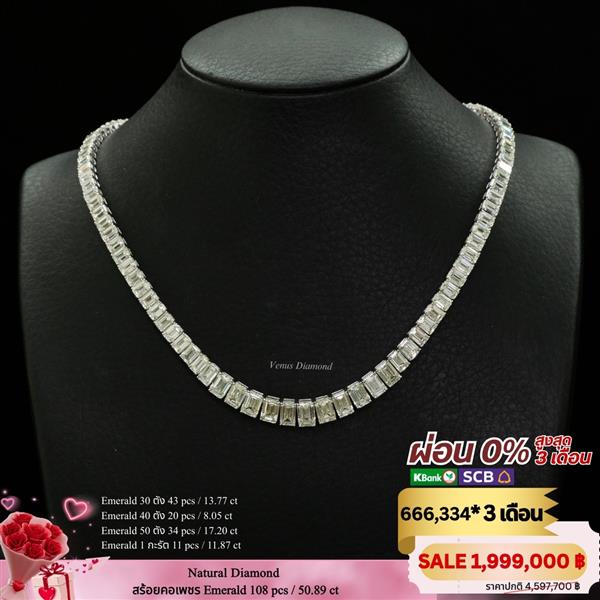 สร้อยคอเพชร Emerald 108 pcs 50.89 ct สี I-J น้ำ 95-94