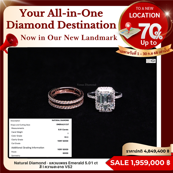 แหวนเพชร Emerald 5.01 ct สี I ความสะอาด VS2 ใบเซอร์ IGI