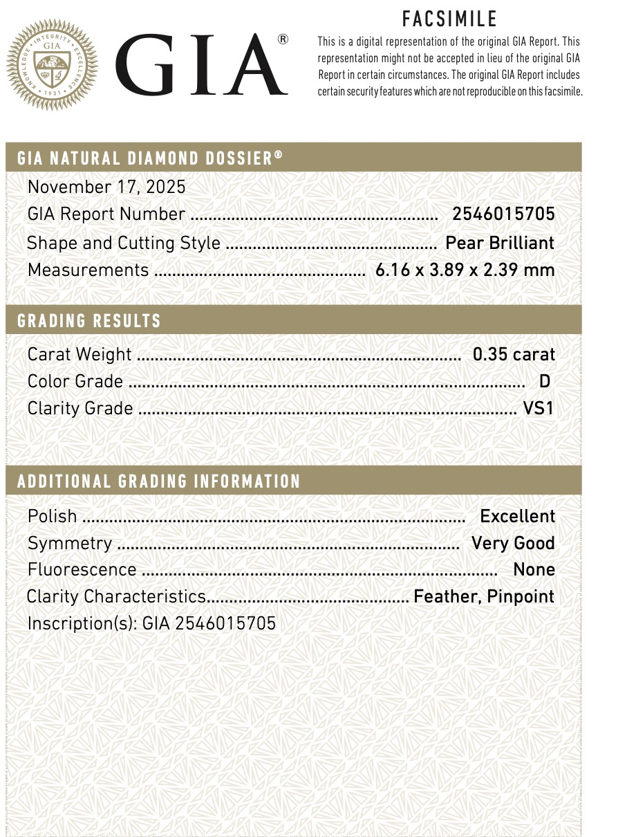 11) Pear 0.35 ct D VS1 1X1VG N GIA 2546015705 ราคาเต็ม 26,600 บาท ราคาขาย 18,000 บาท