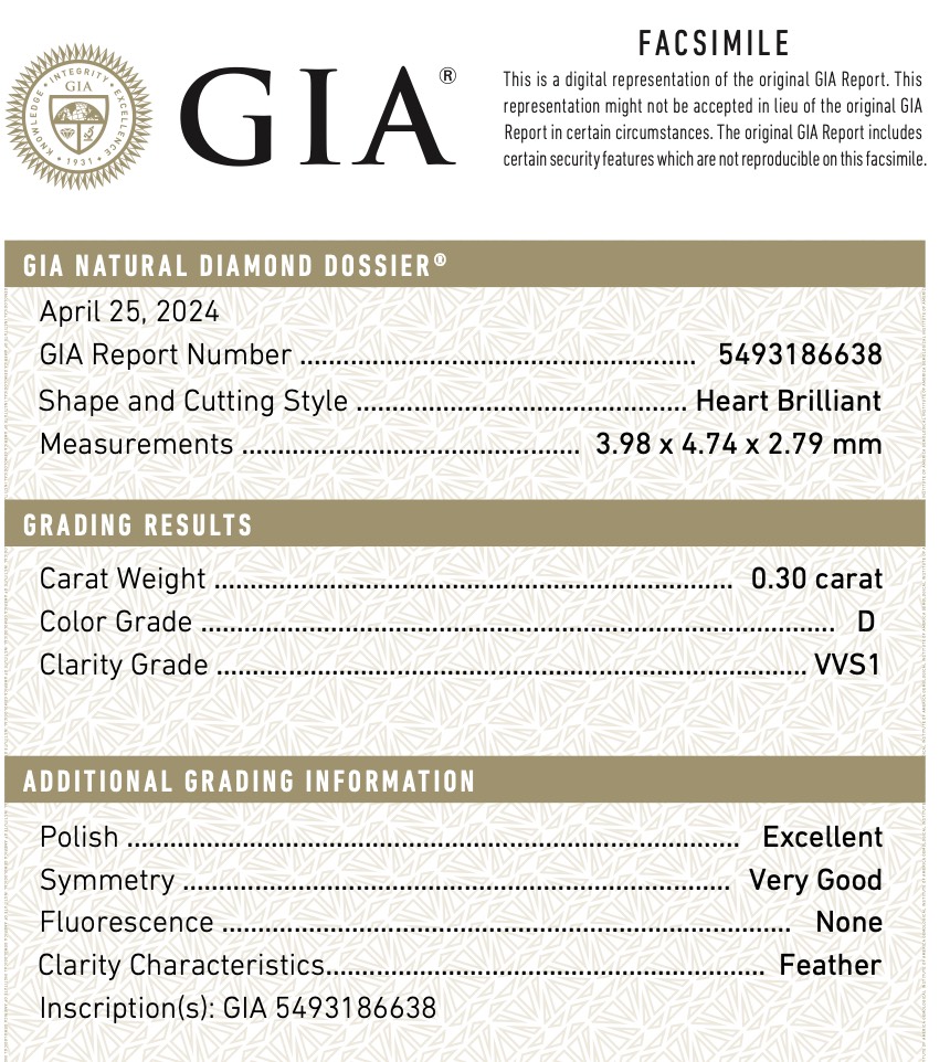 7) Heart 0.30 ct D VVS1 1X1VG N GIA 5493186638 ราคาเต็ม 27,600 บาท ราคาขาย 19,000 บาท