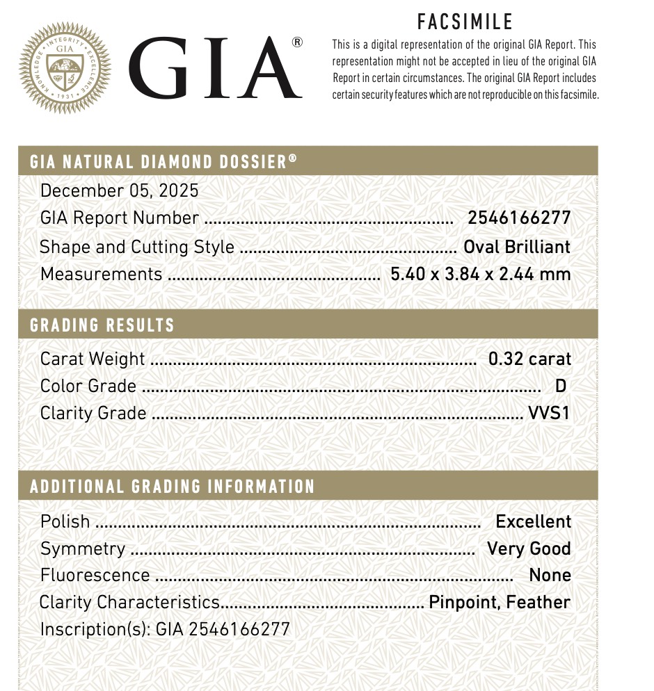 2) Oval 0.32 ct D VVS1 1X1VG N GIA 2546166277 ราคาเต็ม 29,440 บาท ราคาขาย 20,000 บาท
