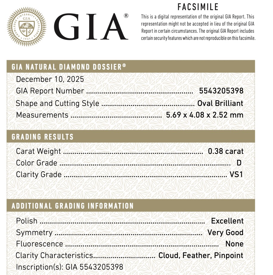 1) Oval 0.38 ct D VS1 1X1VG N GIA 5543205398 ราคาเต็ม 28,880 บาท ราคาขาย 20,000 บาท