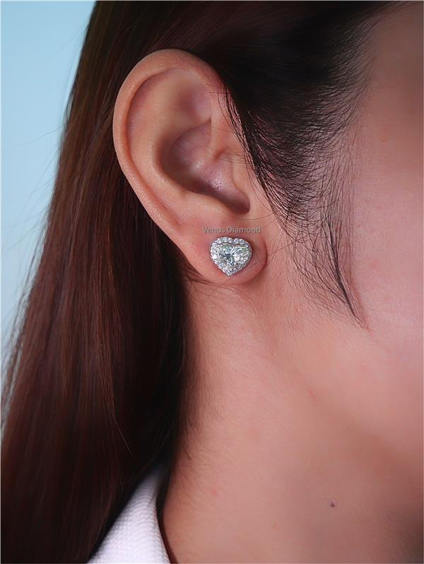 ต่างหูเพชร Heart 1.55 ct+1.51 ct สี M-L ใบเซอร์ GIA