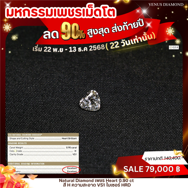 เพชร Heart 0.90 ct สี H ความสะอาด VS1 ใบเซอร์ GIA