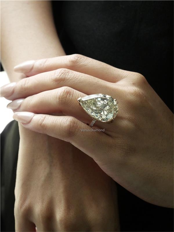 แหวนเพชร Pear 26.31 ct Fancy Champen ความสะอาด VVS VS GIL