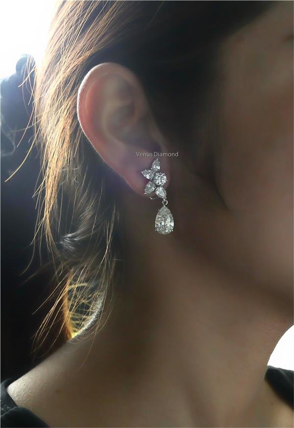 ต่างหูเพชร Pear 4.02 ct + 4.02 ct สี F ความสะอาด VS1 เซอร์ HRD