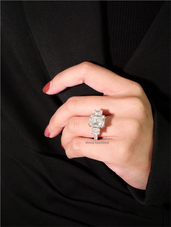 แหวนเพชร Radiant 5.01 ct+0.74 ct+0.80 ct สี H-I ความสะอาด VVS1-VVS2 ใบเซอร์ HRD