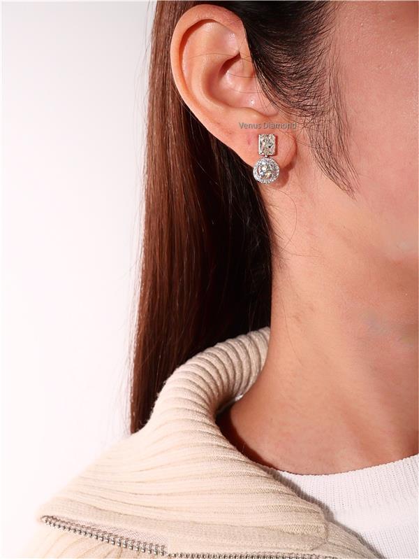 ต่างหูเพชร Radiant 1.79 ct+1.79 ct สี ความสะอาด VS1 -Round 1.00 ct+1.01 ct สี I-J ...