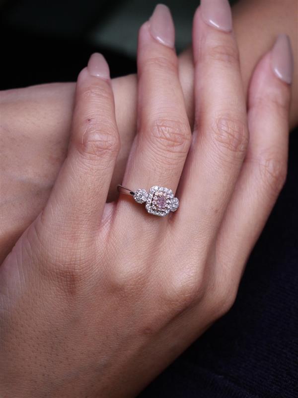 แหวนเพชร Radiant 0.18 ct Faint Pink ใบเซอร์ GIA