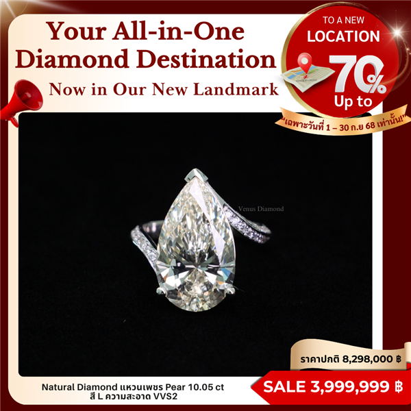 แหวนเพชร Pear 10.05 ct สี L ความสะอาด VVS2 ใบเซอร์ IGI
