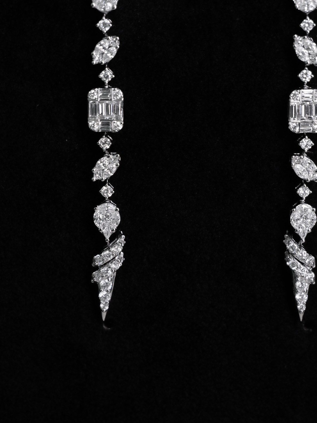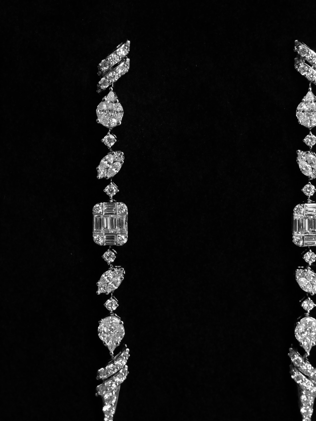 ต่างหู E2813A1 / 131765 Baguette 16/0.374 ct Marquise 20/0.612 ct Pear 4/0.111 ct Princess12/0.176 ct Round 62/1.01 ct white gold 18k. 8.33g สี D E F ความสะอาด VVS VS