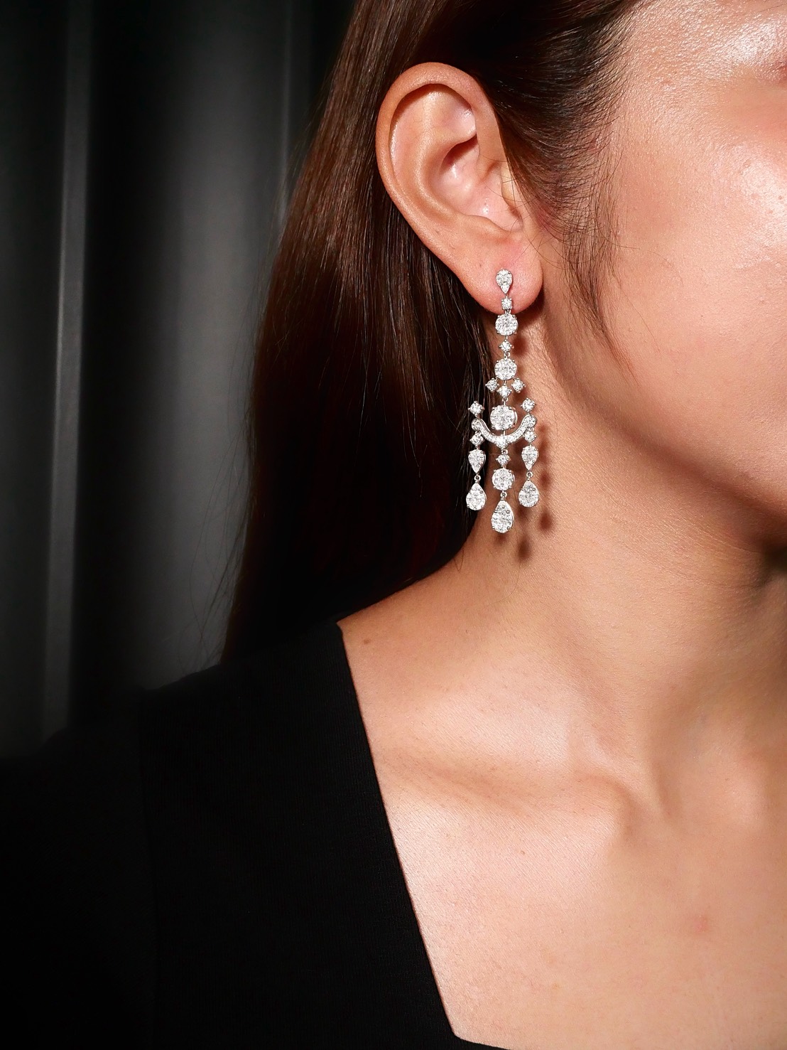 ต่างหู BE 3464WDI1 Marquise 68/2.83 ct Pear 12/1.02 ct Princess 22/0.33 ct Round 46/1.87 ct white gold 18k. 17.86 g.