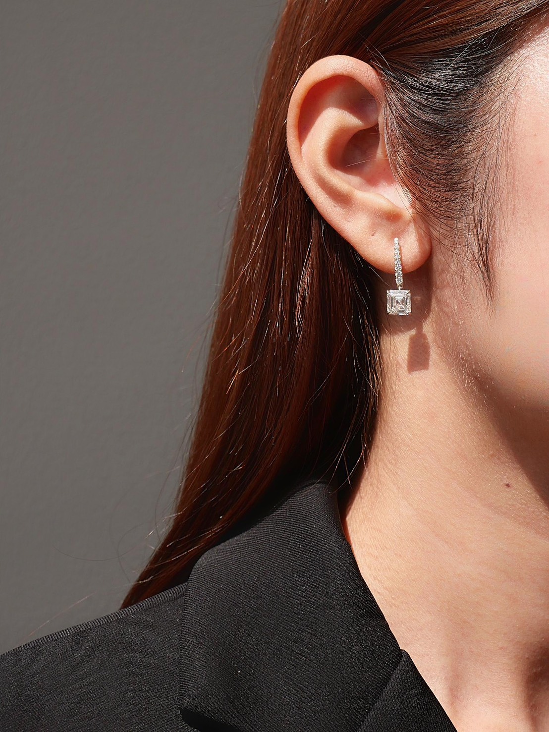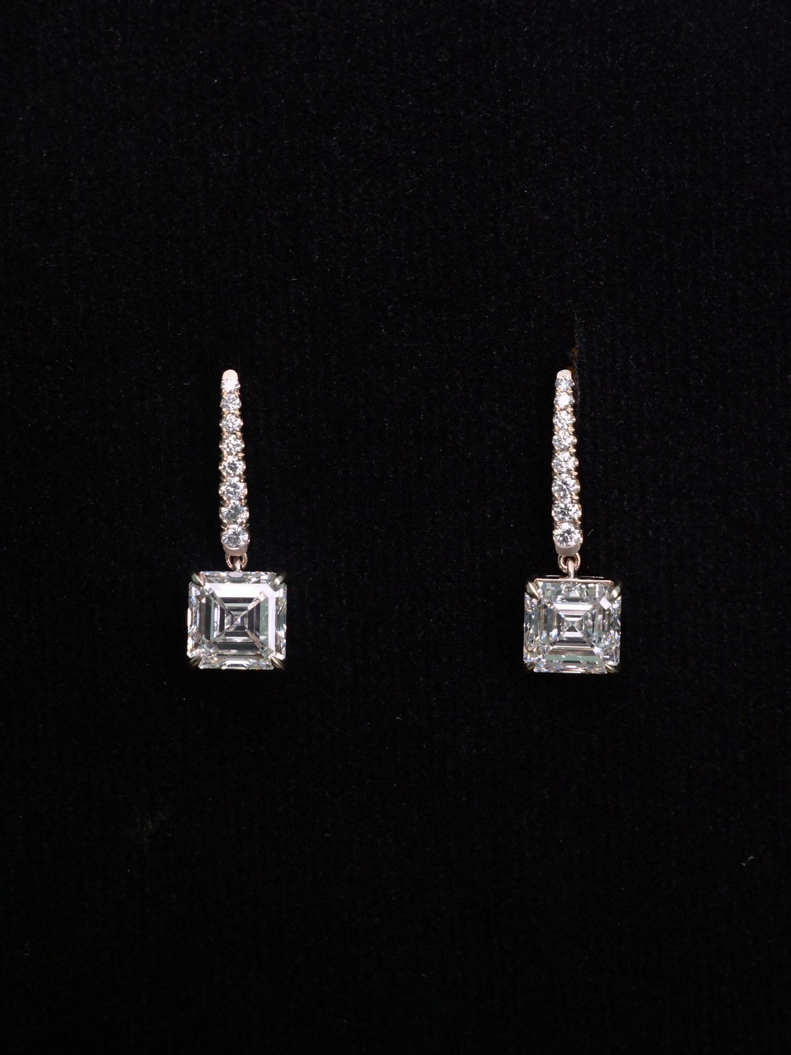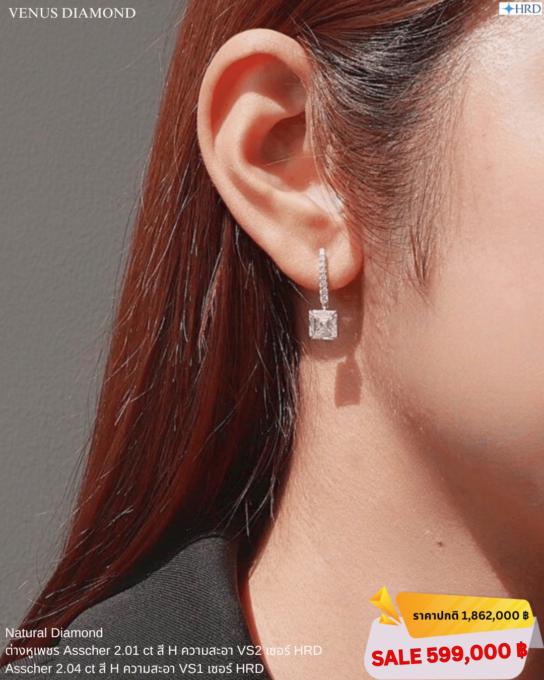 💎✨ Rare Natural Asscher Cut Diamond Drop Earrings - ต่างหูเพชรแท้ทรง Asscher Cut เม็ดโตๆ น้ำหนักเพชร ฟาดไป 2.01 + 2.04 กะรัต