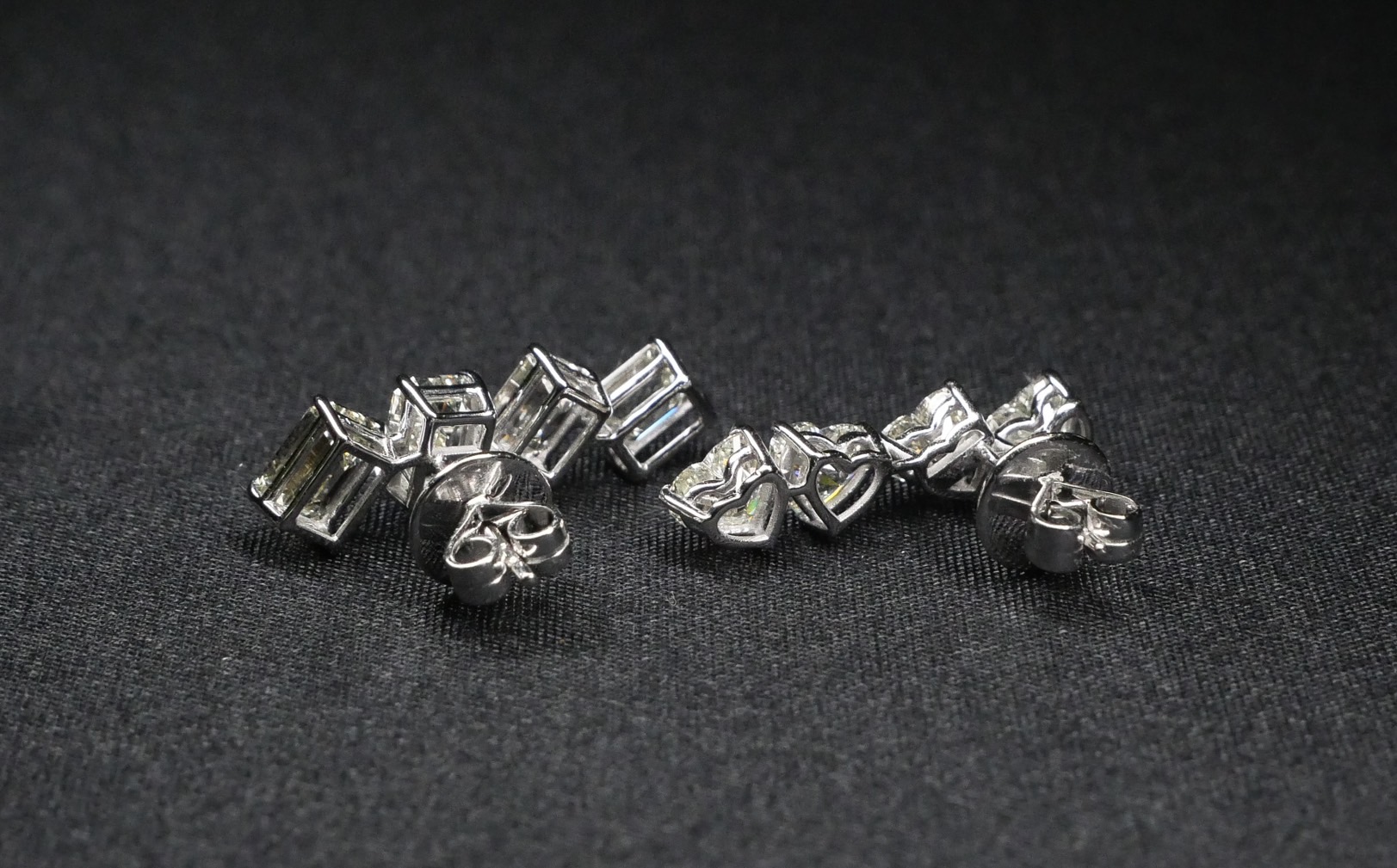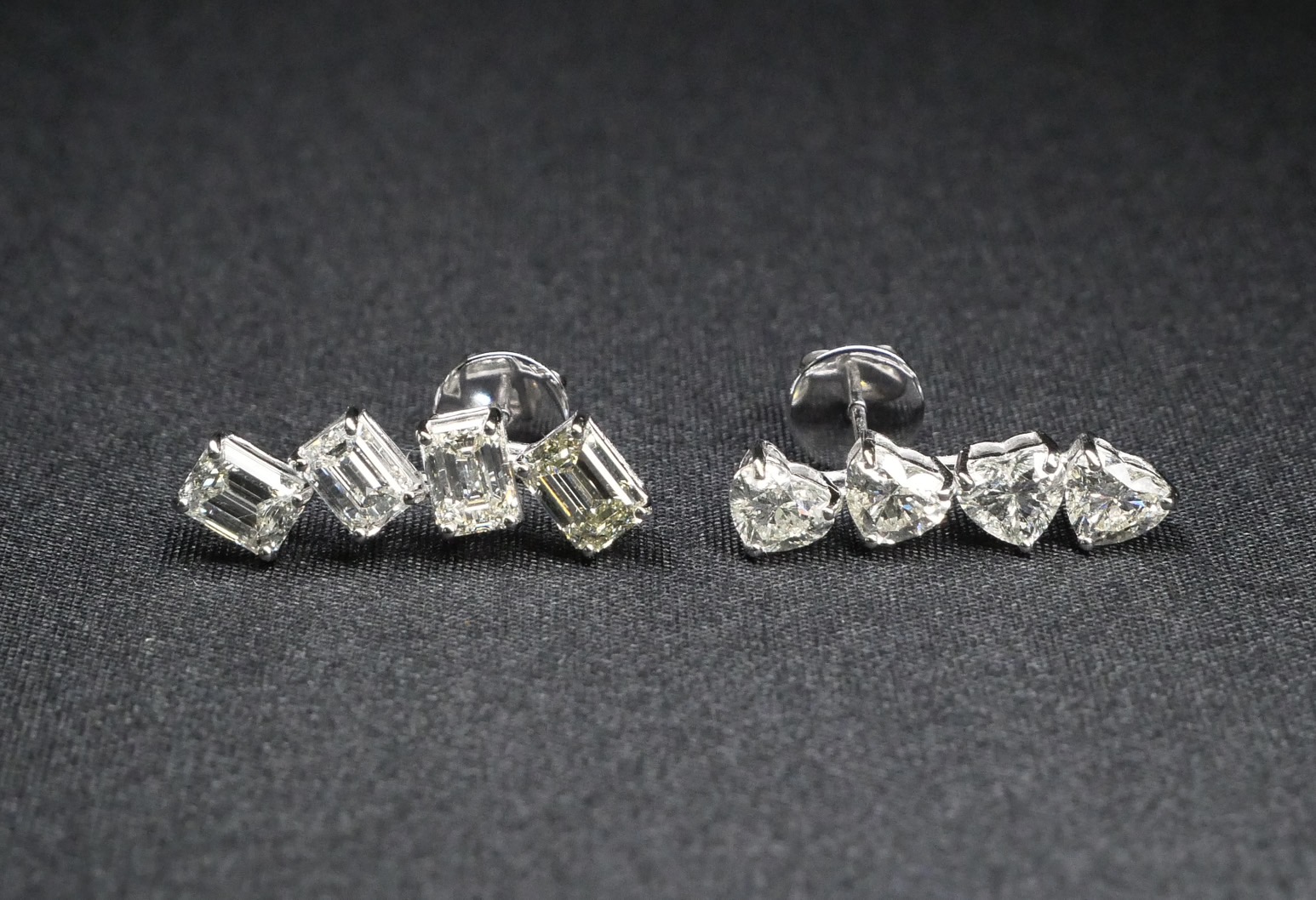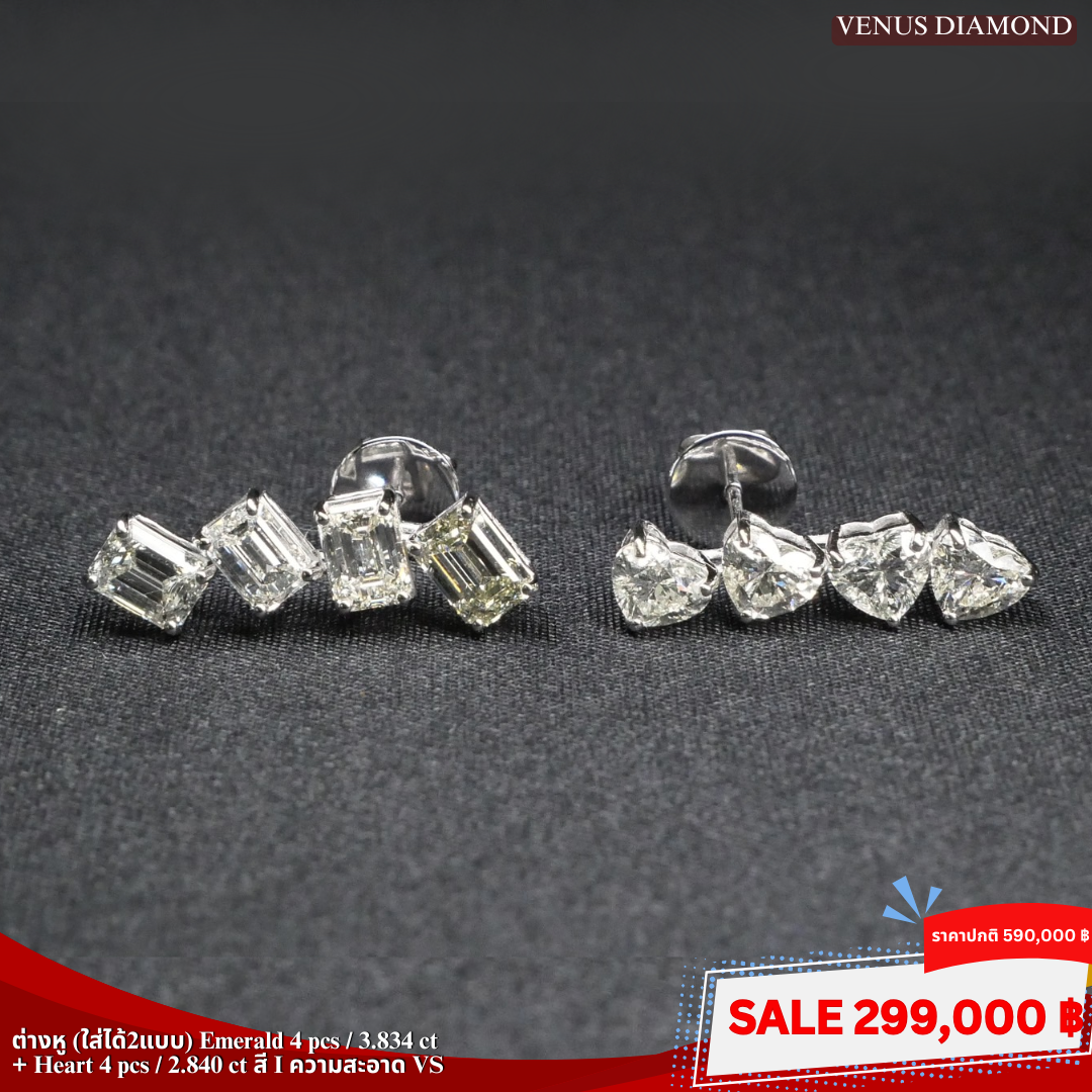 ต่างหูเพชร Emerald 4 pcs 3.83 ct และ Heart 4 pcs 2.84 ct สี I ความสะอาด VS